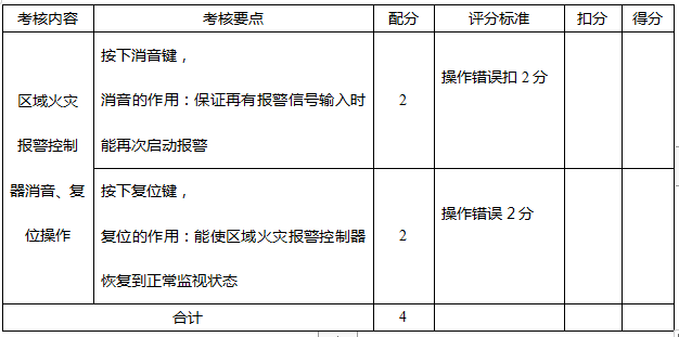 2.考核要求:能正确完成区域火灾报警控制器的消音、复位操作。
