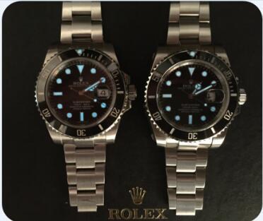 ¨仿品早在几年前就可以做出颜色和正品很相近的夜光,但是就算到了现在,夜光持久度仍无法和正品媲美。