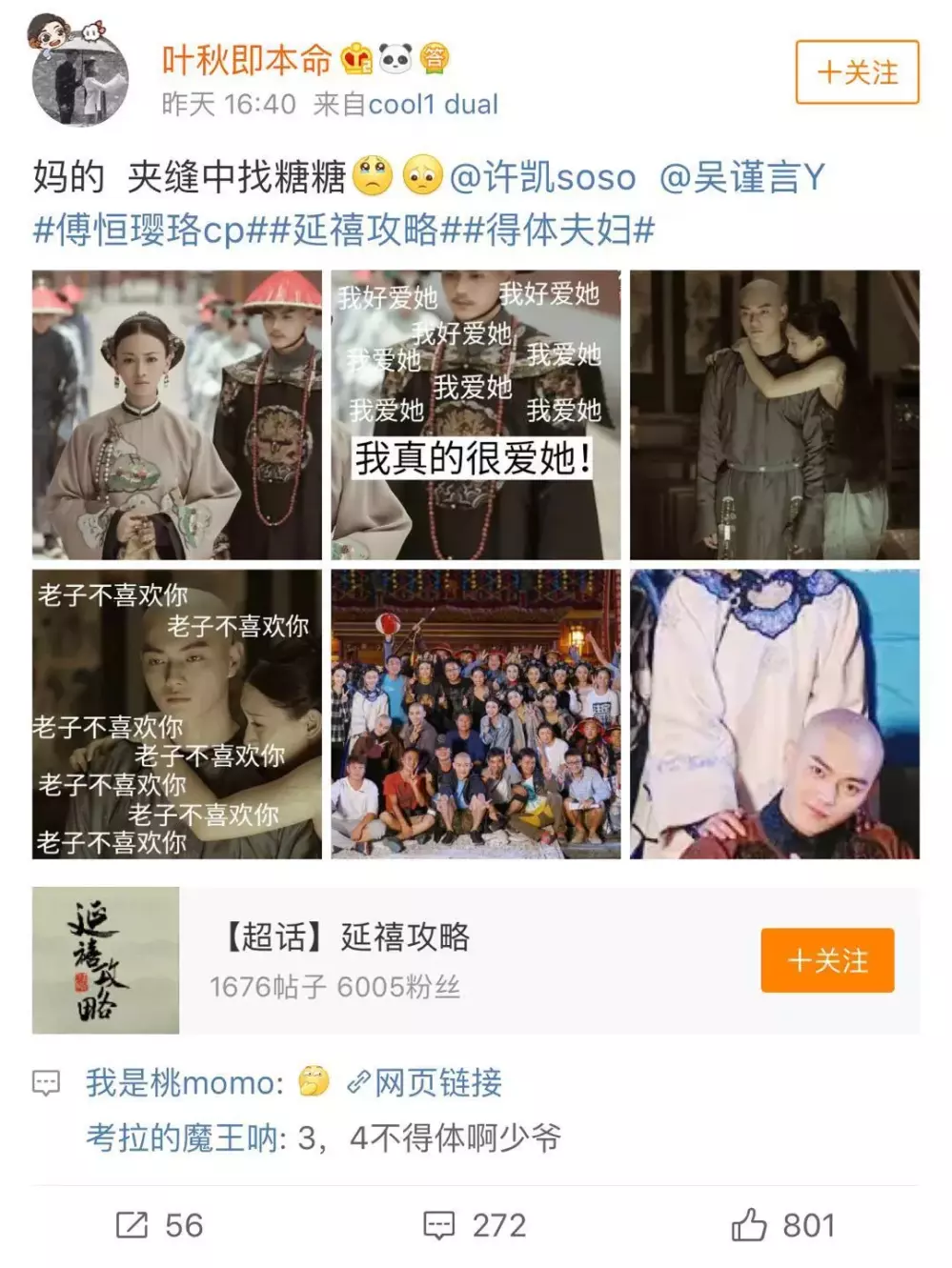 整个人就一直是文文弱弱,知书达理,如果你看得仔细,还会发现富察皇后和后宫妃子们有浓浓的百合情。微博上很多网友还戏称“整个后宫只有高贵妃一个人在认真宫斗,其他妃子都在泡皇后”。