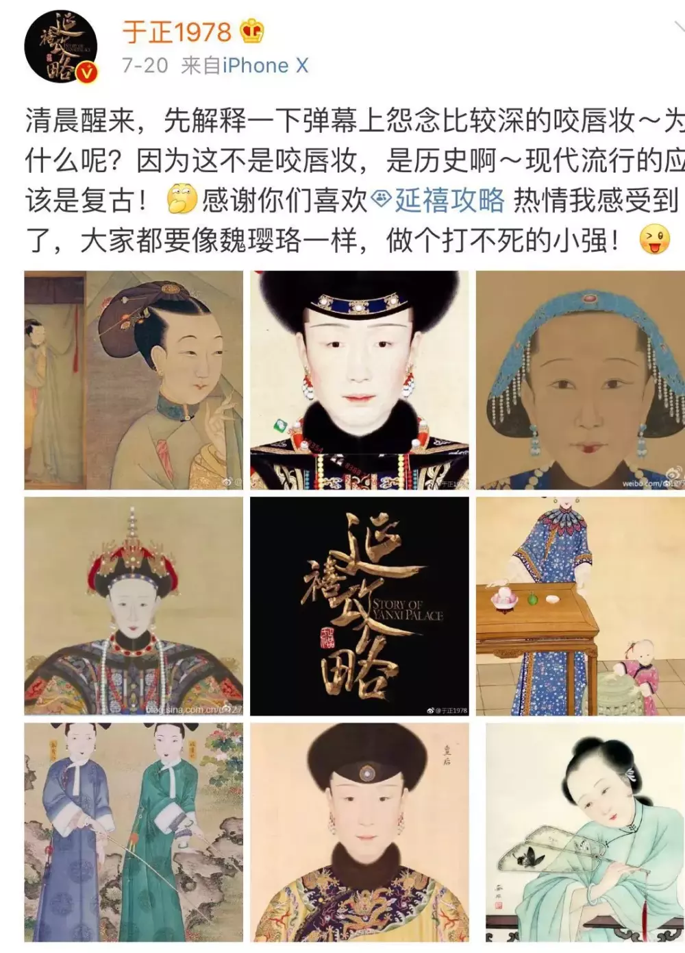 虽然豆瓣上有不少网友指出《延禧攻略》在服化道上仍然存在部分非典型错误,但整体来看还是比以往的清宫剧还原度更高,看得出来于正这一次的确下了工夫。