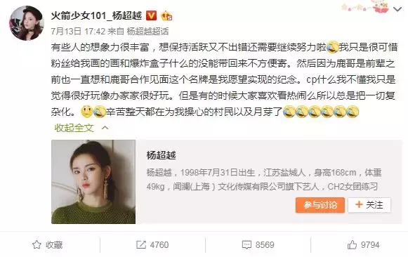 杨超越发表声明