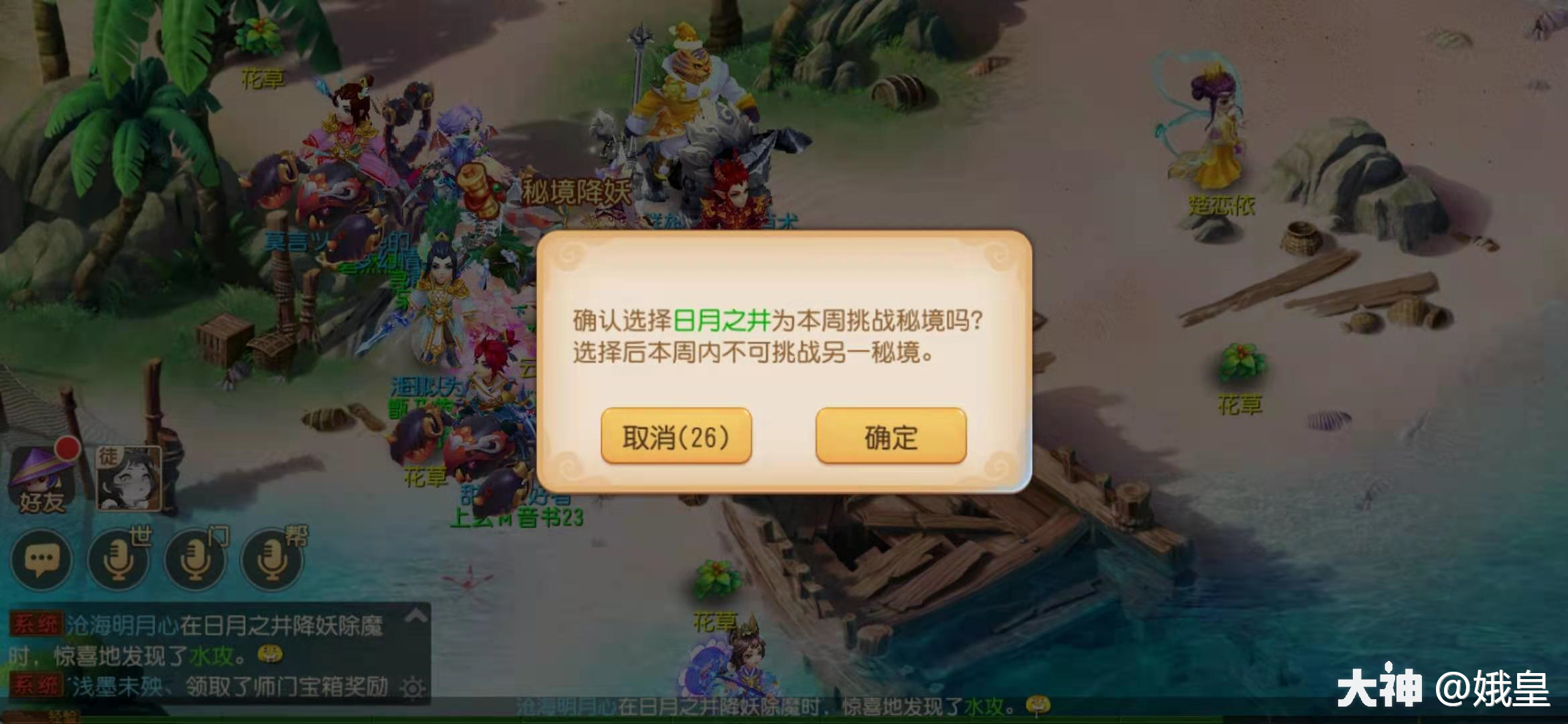 全新秘境日月之井和老秘境海底瑶池等秘境并行开放,少侠可二择一进行挑战