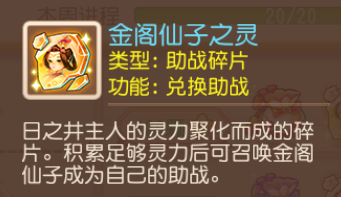 - 金阁仙子之灵,就是助战碎片,累计两个以上可以兑换相应时间的金阁仙子助战(金阁仙子的初级介绍)