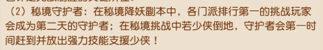 三,排名奖励:各门派排行第一的挑战玩家会成为第二天守护者