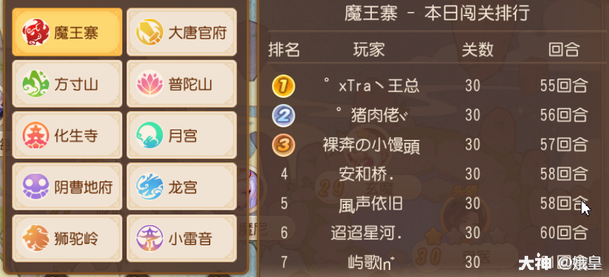 新秘境的排行打破以往秘境蜃境等的排行规则,过去是以时间做为计算排行(不过听说现在旧秘境也是按回合计算了)