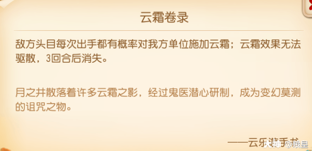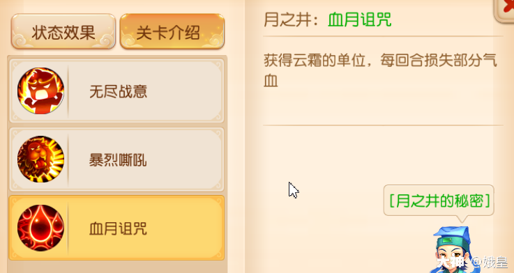 - 血月诅咒:获得云霜的单位,每回合损失部分气血。这个部分气血一般为自身气血的20%。