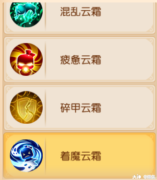 - 混乱云霜:回合结束后若血量低于30%,则有概率被混乱2回合