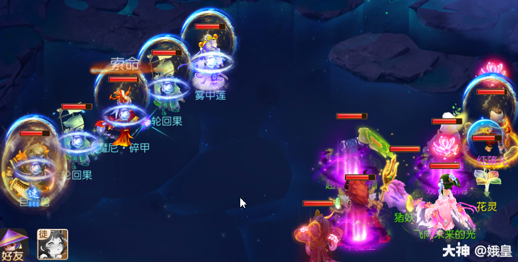 回合开始时,会随机复制我方的两个助战,复制得感觉难打就跑,逃跑不消耗挑战次数。旁边的两个月宫伤害比较高,速度也比较快。带两奶两输出一个一个杀。助战没满,人物没特技,没愤怒没宝宝的打法视频