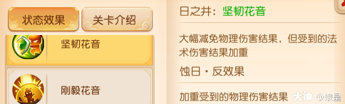 - 御法花音:大幅减免法术伤害结果,但受到的物理伤害结果加重