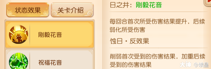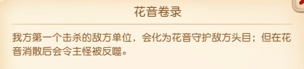 花音效果是我方击杀的第一个敌方小怪单位,主怪获得这个小怪对应的花音守护。反效果是说花音守护消失后,受到的反噬3回合。(但是好像这种反噬是可以被解除的)