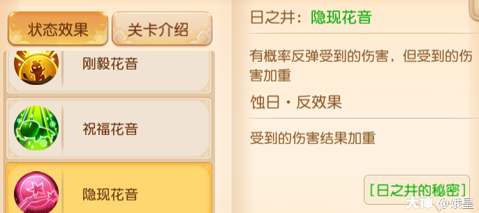 - 隐现花音:有概率反弹受到的伤害,但受到的伤害加重