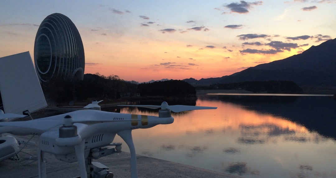 在浏览过百度上的雁栖湖风光图片和地图后,首先雁栖湖有山有水,更有有设计独特的日出东方凯宾斯基酒店和园林设计很出色的雁栖酒店。日出东方坐落于雁栖湖南岸,周围空旷无遮挡,酒店南面是一片平原地带。看到地图我就想到以酒店为背景,航拍日出和日落的话,不论从构图还是色彩,都应该有不错的表现。