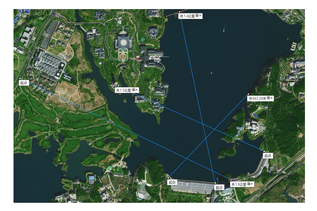 接下来将地图上的几个主要目标之间标明了距离,高度要等去到现场才能设定。