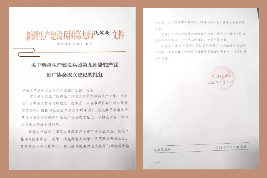协会的成立将为打造新疆生产建设兵团第九师骆驼产业特色品牌,宣传骆驼产业特色产品知名度,发展壮大第九师骆驼产业企业,助推第九师经济发展起到积极作用。