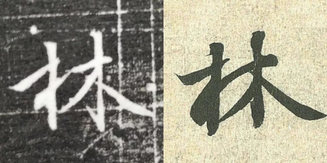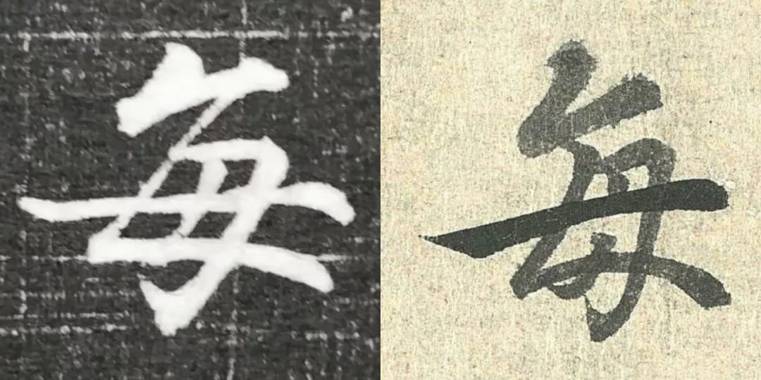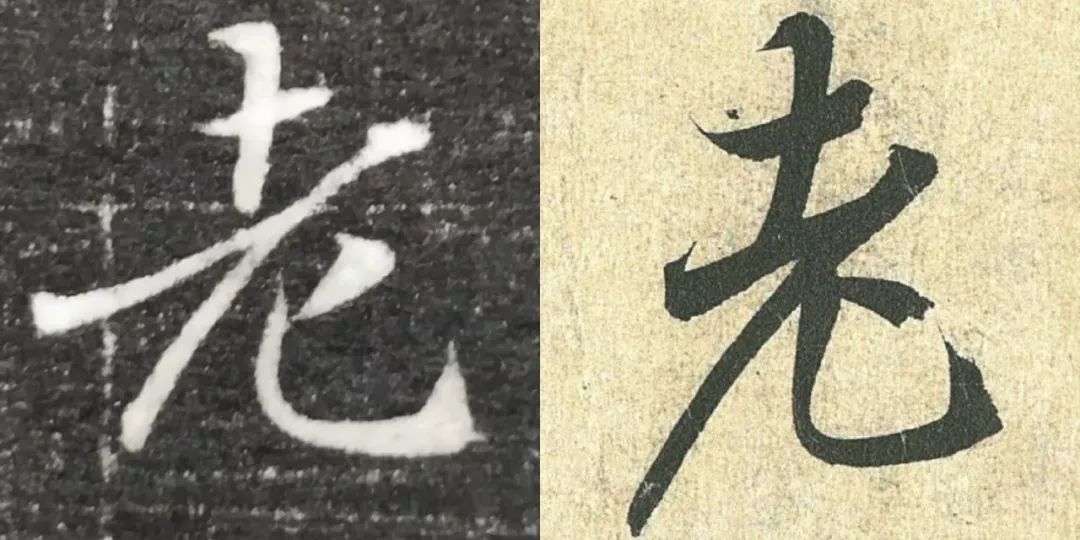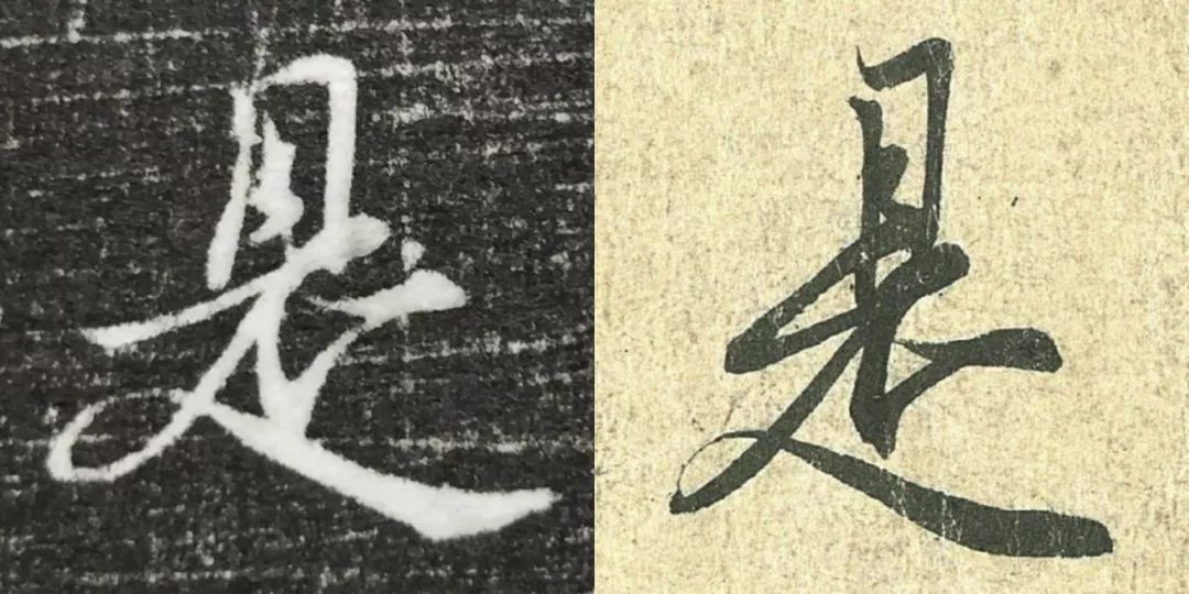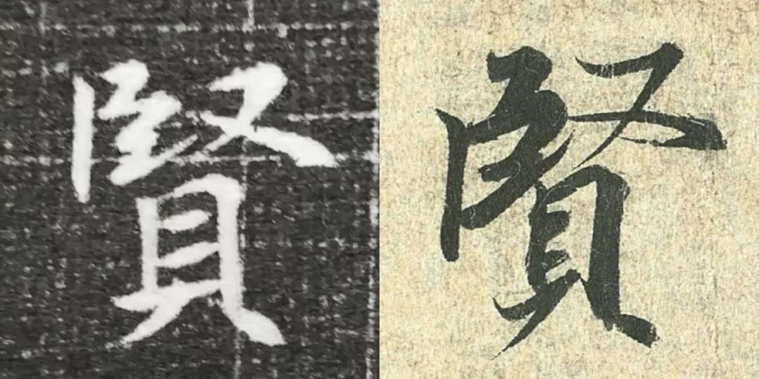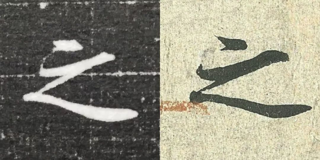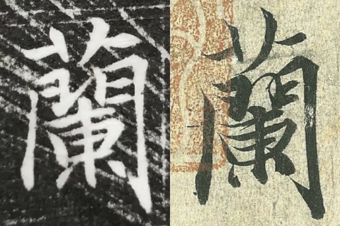 概而观之,这件墓志与赵体颇相近,结体宽绰,用笔灵动,风韵潇洒。可以说,赵孟頫从中汲取了丰富营养。而赵孟頫崇尚“复古”,他的字也是取法“二王”,所以也很正常。同时,这件墓志也充分反映了盛唐时期书者对《兰亭序》的取法传习,特别是当我们将《兰亭序》的单字抽出来,与冯承素所摹的神龙本《兰亭序》作一个对比,实在是如出一辙。