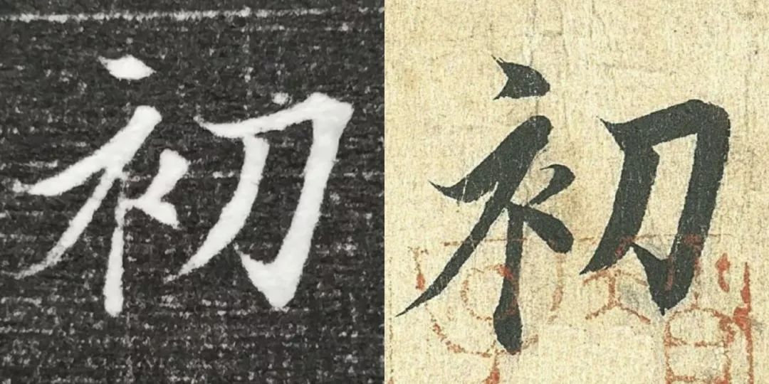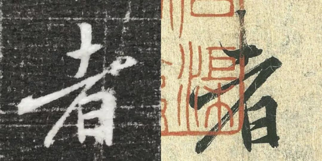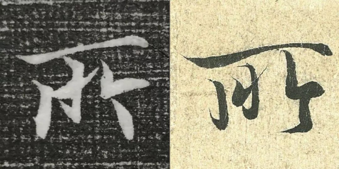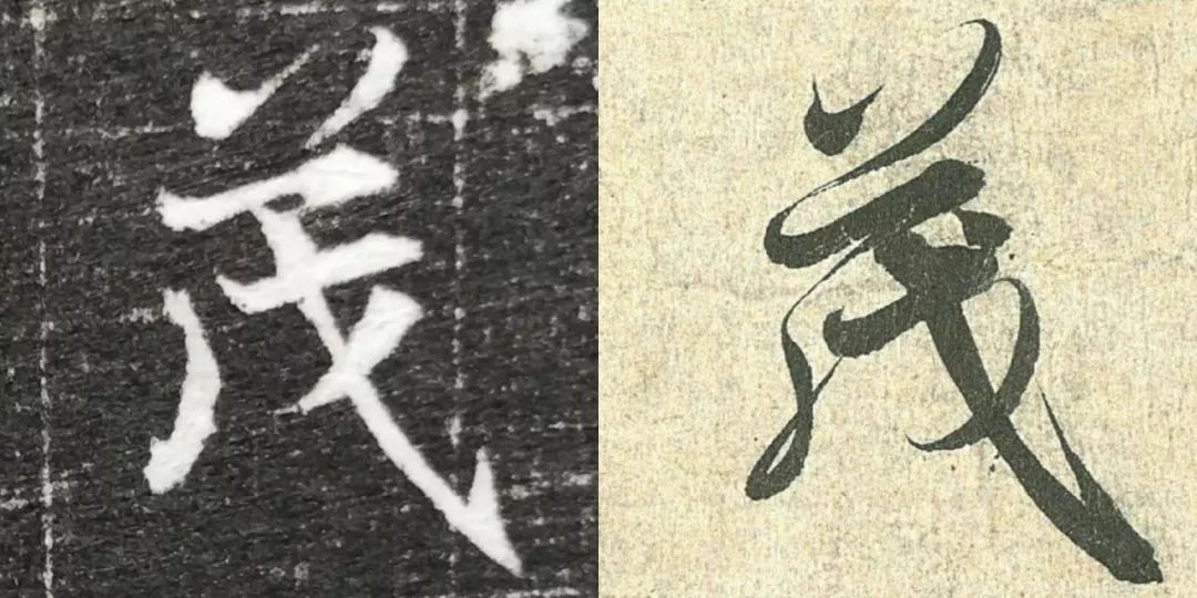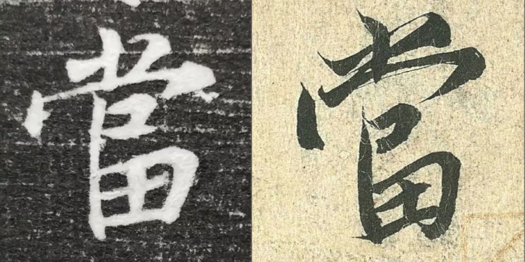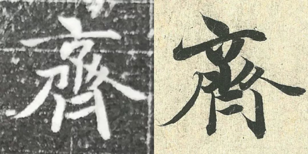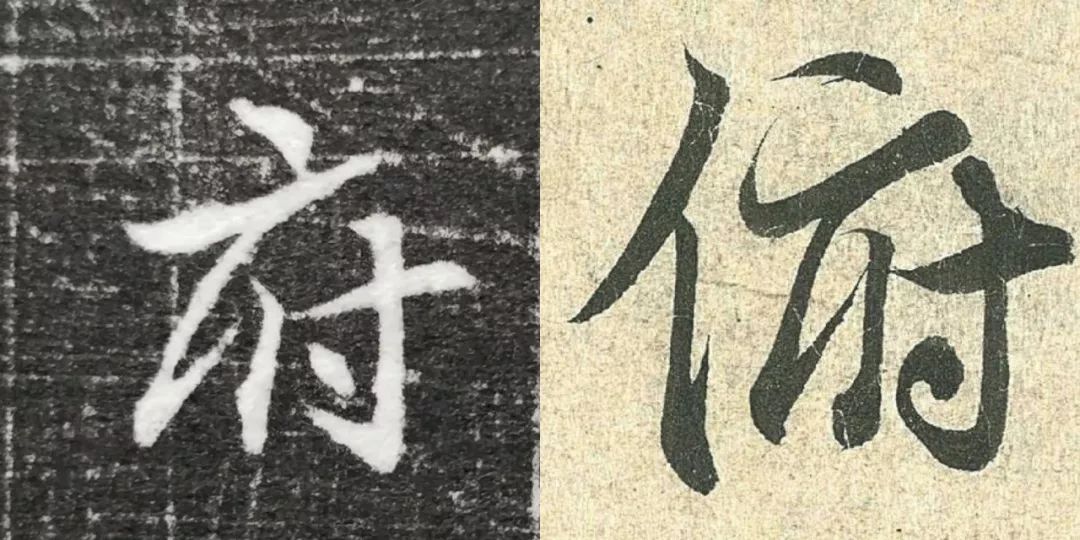 概而观之,这件墓志与赵体颇相近,结体宽绰,用笔灵动,风韵潇洒。可以说,赵孟頫从中汲取了丰富营养。而赵孟頫崇尚“复古”,他的字也是取法“二王”,所以也很正常。同时,这件墓志也充分反映了盛唐时期书者对《兰亭序》的取法传习,特别是当我们将《兰亭序》的单字抽出来,与冯承素所摹的神龙本《兰亭序》作一个对比,实在是如出一辙。