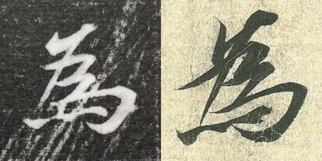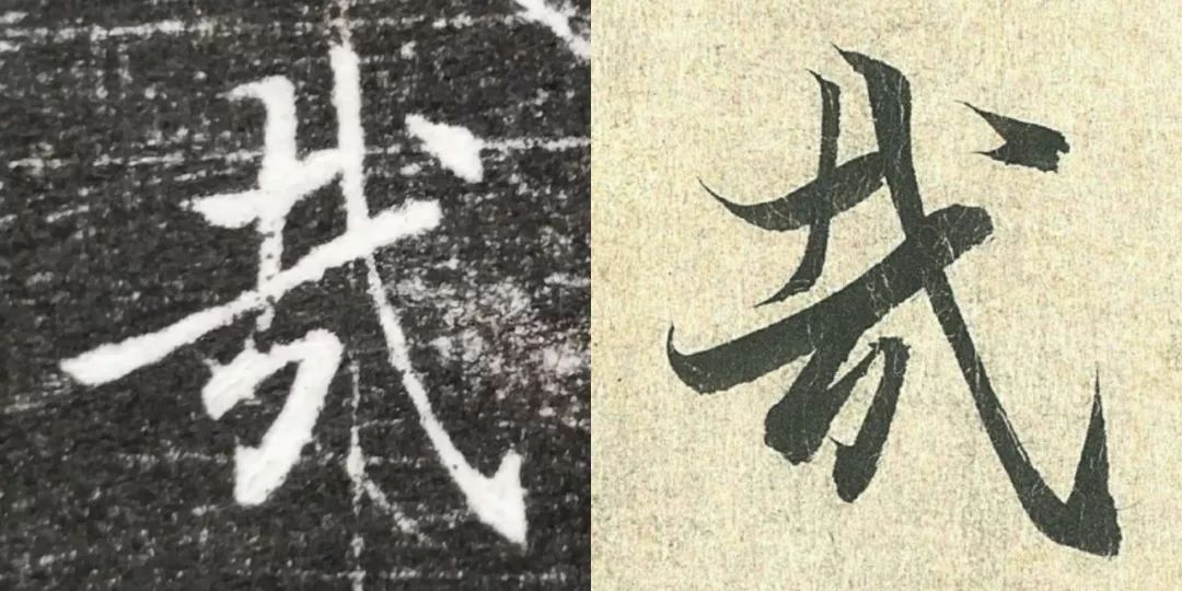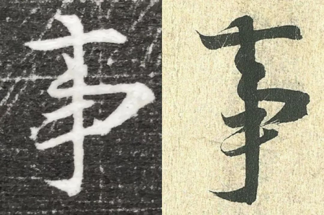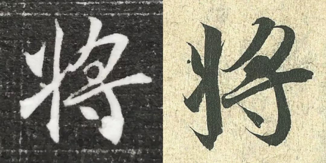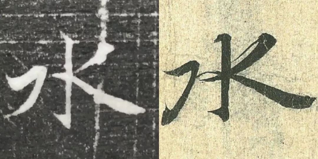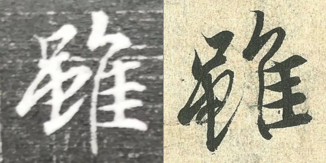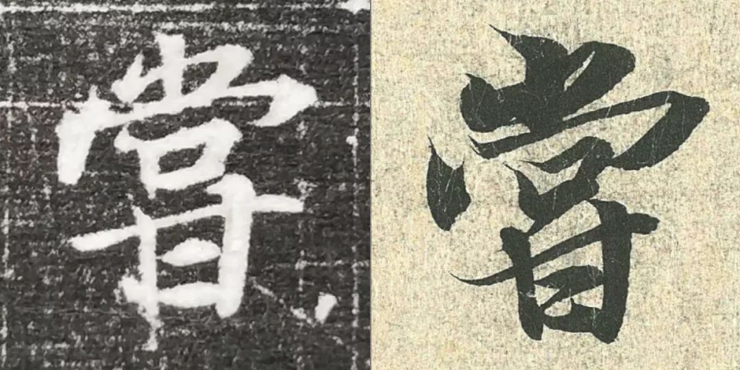 概而观之,这件墓志与赵体颇相近,结体宽绰,用笔灵动,风韵潇洒。可以说,赵孟頫从中汲取了丰富营养。而赵孟頫崇尚“复古”,他的字也是取法“二王”,所以也很正常。同时,这件墓志也充分反映了盛唐时期书者对《兰亭序》的取法传习,特别是当我们将《兰亭序》的单字抽出来,与冯承素所摹的神龙本《兰亭序》作一个对比,实在是如出一辙。