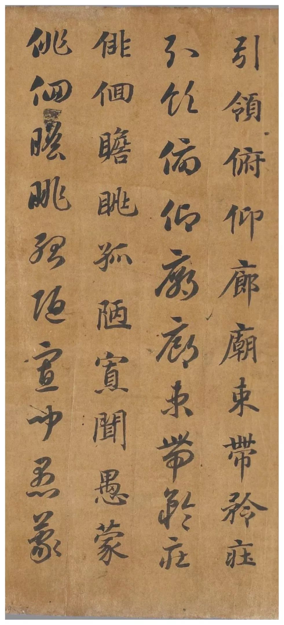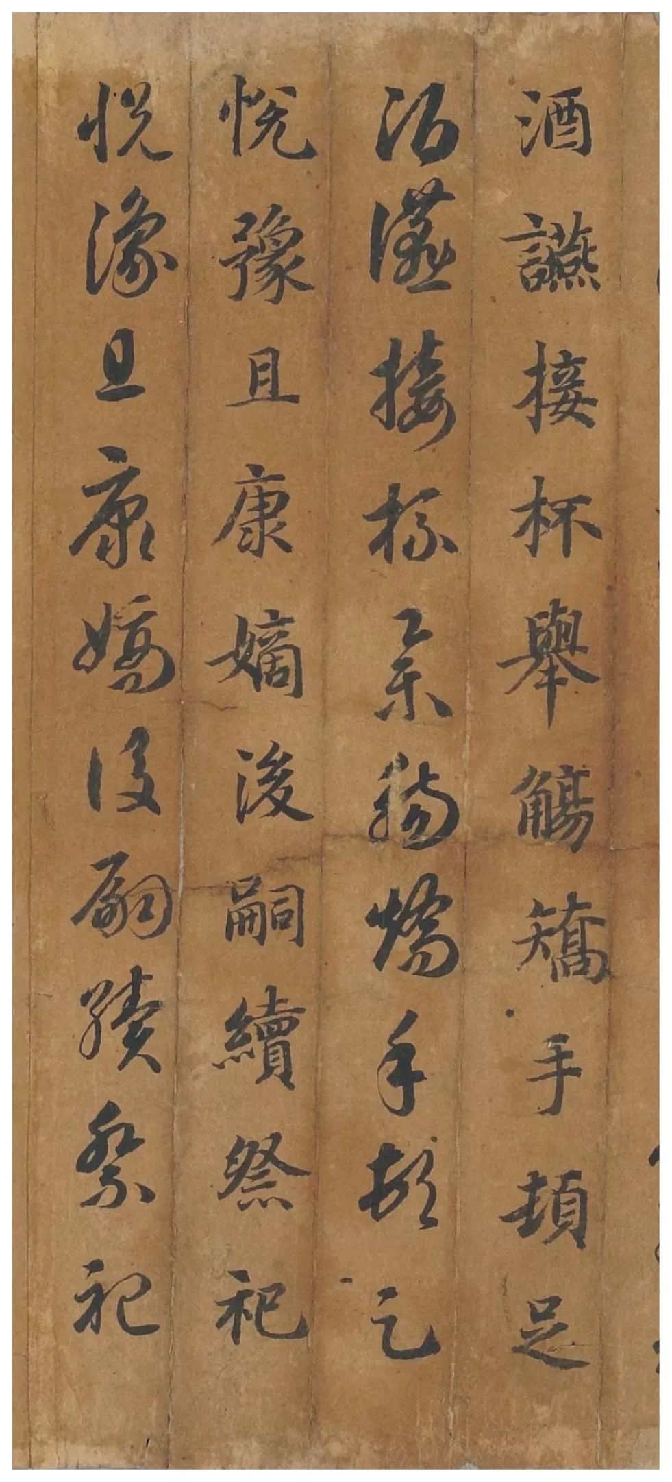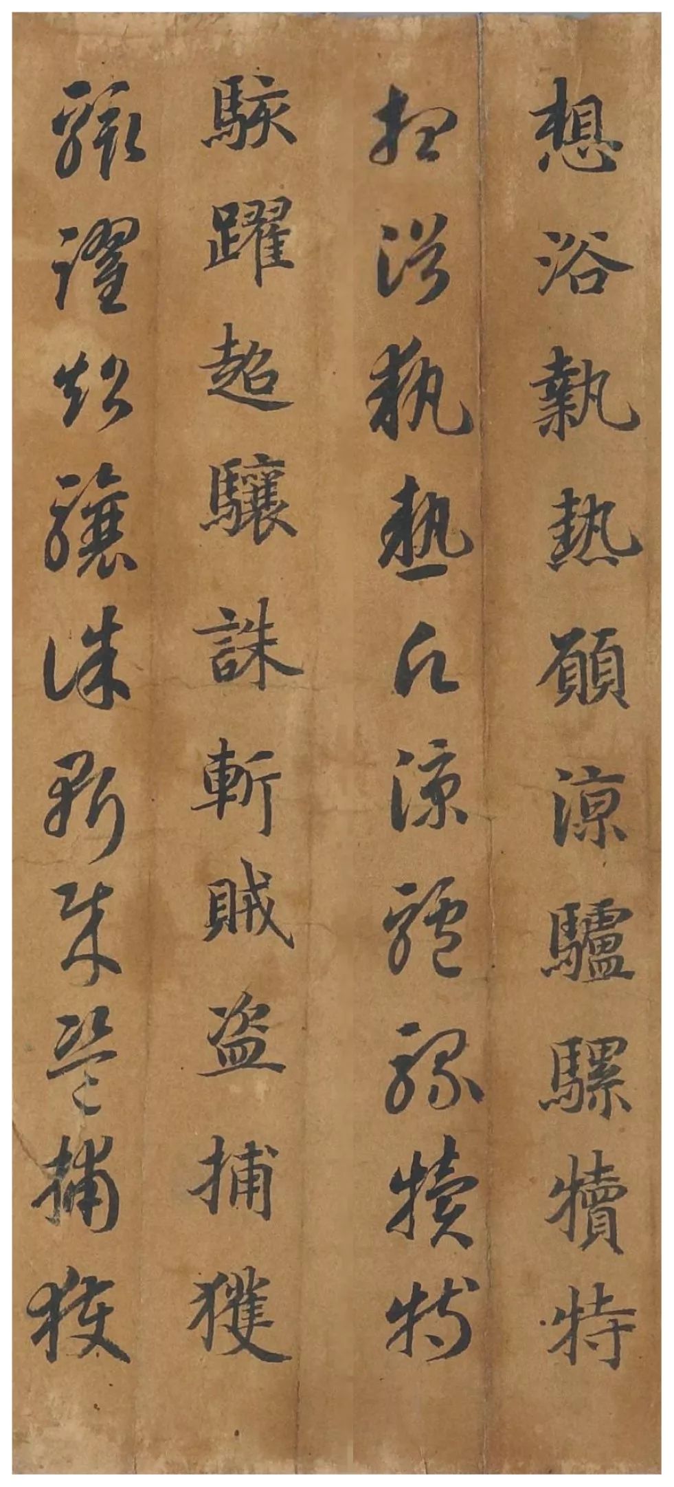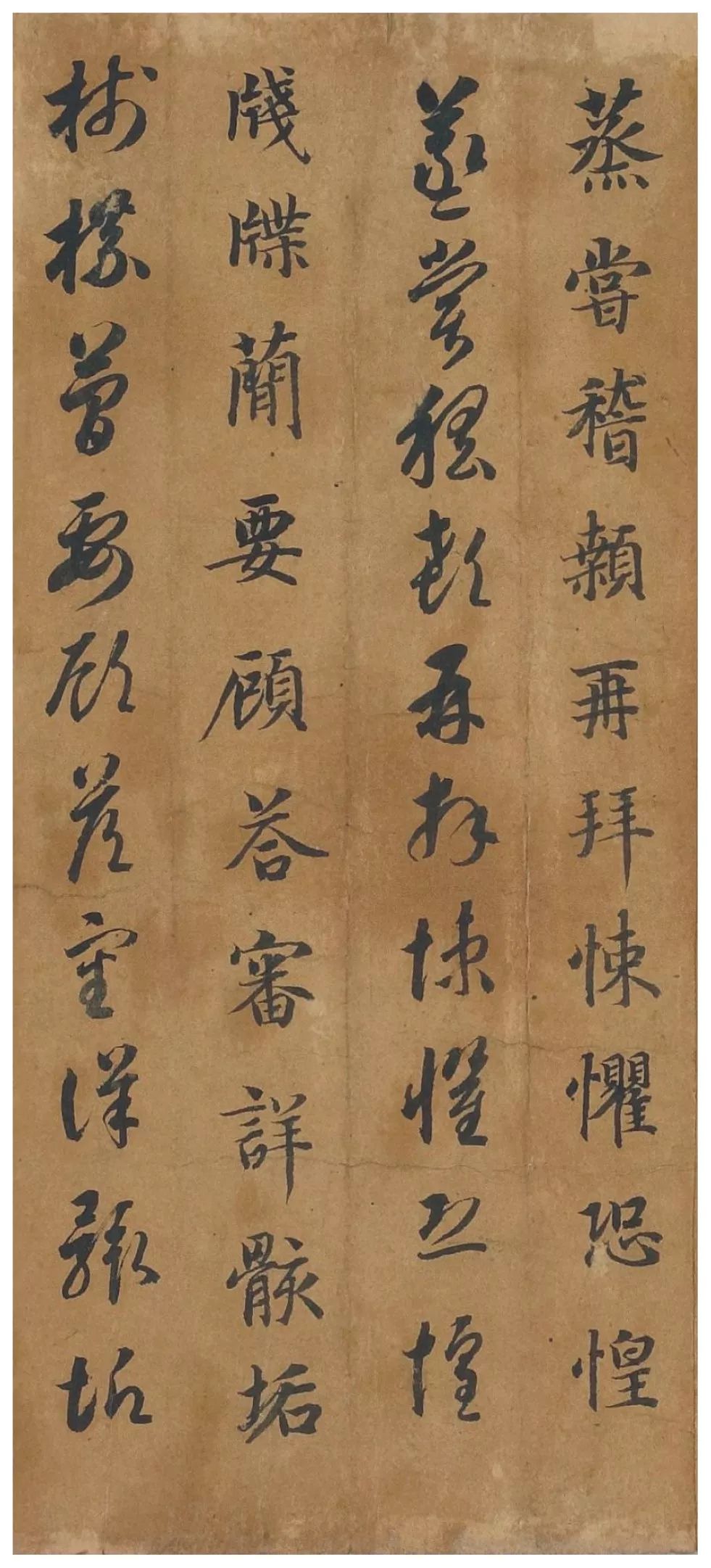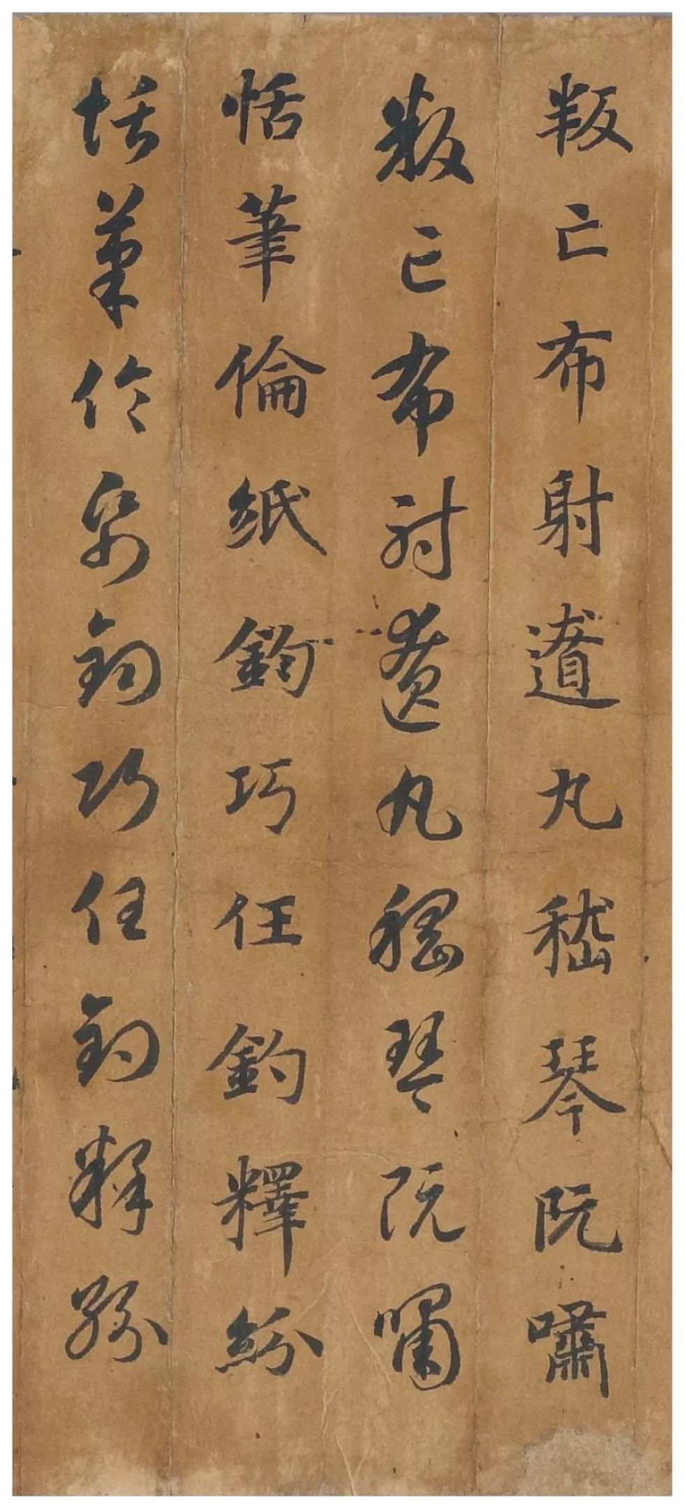 智永《真草千字文》临本,唐蒋善进临。高25厘米,宽102厘米,茶色楮纸本。残存卷尾部分,自“(侍巾)帷房”至“焉哉乎也”,真草书各三十四行,凡一百七十字。卷中有拼接。卷末正文后有“贞观十五年(641)七月临出此本,蒋善进记”十五字,楷书,题记两侧的空白处有后人加写的“上元二年”等字迹以及涂抹改动之墨痕。