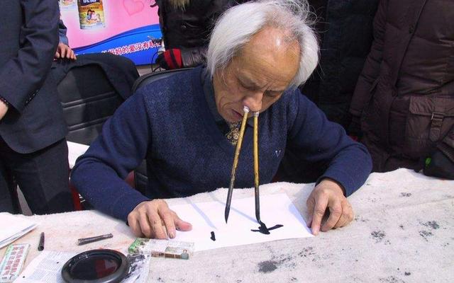 大家通过这个名字就应该能想到鼻孔书法的含义,鼻孔书法就是用鼻子插上毛笔写字,这已经不能称作为书法,只能说是一种杂技。鼻孔书法虽然没有射书那么大的名气,但是这种形式也是被人嗤之以鼻。作为一位双手健全的人,不用手去写字,却用鼻子写字,这不就是典型的在糟蹋书法吗。对于这种丑书我们应该抵制。