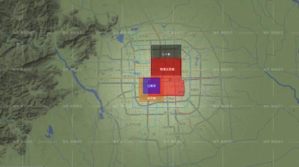 北京分布着辽南京、金中都、元大都、明清北京,叠加的古都城址。