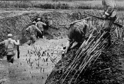 从武汉南下,开始湘赣战役时,头上大太阳,脚下烂泥地,又潮又热又闷。这种热乎乎的湿热劲儿,浑身毛孔都像嘴巴大张着,很多人一会儿就不行了。那时也不知气温多少度,估摸低时也不下25度,最高时能有40度,那烂泥都热乎乎的烫脚。