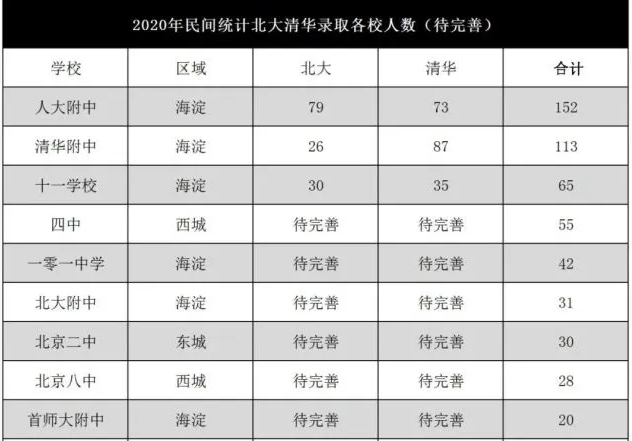 从表格中我们发现,特优生的人数上,清华附中113人排名第二,仅次于人大附中,北京四中仅55人排名第四,不到清华附中的一半,甚至低于十一学校。