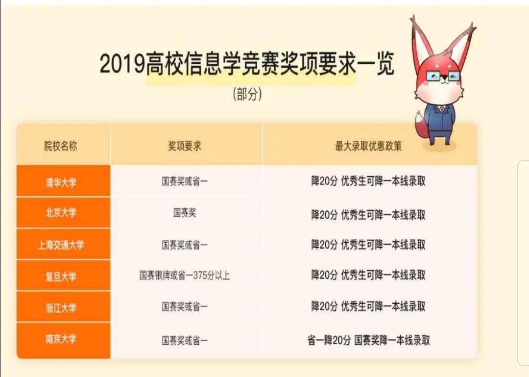 如果要通过信息竞赛获得高校的录取优惠政策,要达到的水平是: