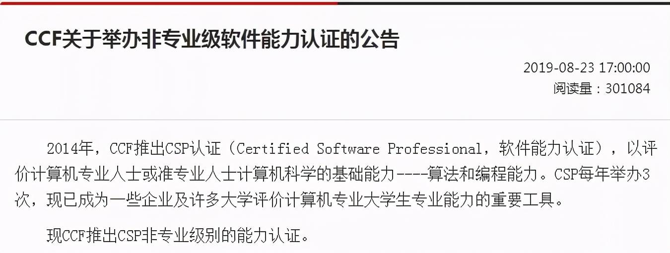 原因嘛,众所周知的原因,但是,中国家长鸡编程的路不会就此停驻,而CCF也做了对应的调整,推出了CSP非专业认证。