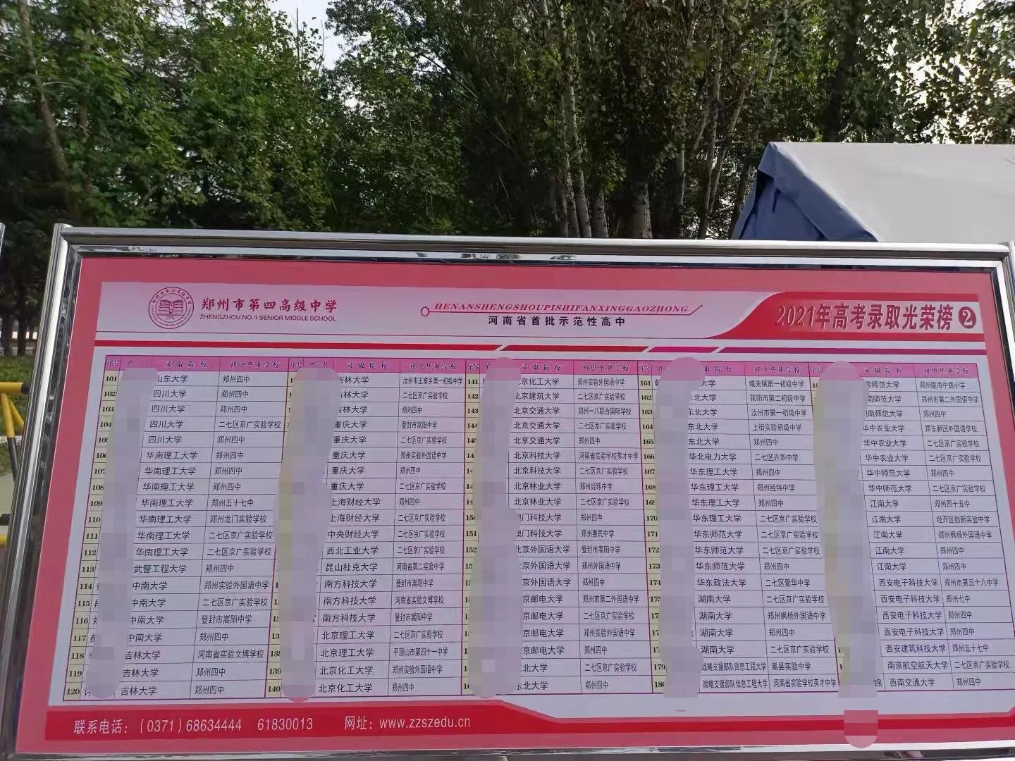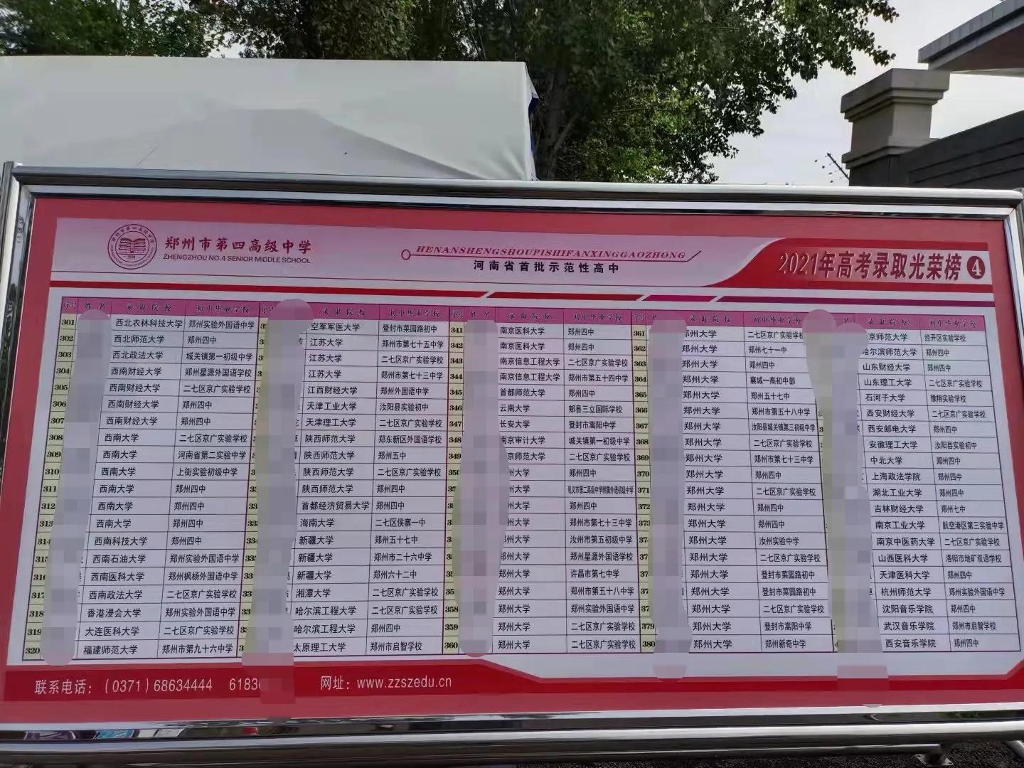 前几天,网上流出郑州四中2021年的红榜(200人),笔者第一时间进行了分析,该红榜仅公布了200人,而且没有郑大、河大等省内高校录取情况,并不很完整。而今日,笔者又获悉郑州四中最新公布了更新的2021年高考录取光荣榜(400人),如去年一样,此红榜标注了所有同学的初中毕业学校,据此,笔者再度分析一下,供各位家长参考。