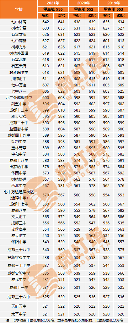 这些高中常年在重点线徘徊,甚至武侯高中、华阳中学、成飞中学经常在重点线下补录,最终的录取分数还低于重点线。