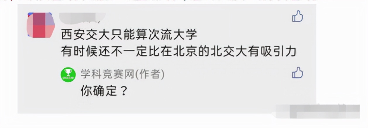 “西交大少年班生源越来越不行了,真正的优等生看不上,西交大只能算是次流大学,比不上北交大有吸引力。”