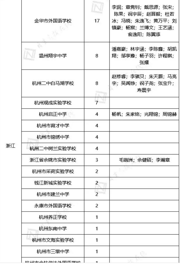 浙江省金华市外国语学校、温州翔宇中学、杭州二中、杭州观城实验学校等20所高中,在此次少年班选拔中都有收获,因此浙江也成为此次西交大少年班选拔的最大赢家,可谓是一家独大了。