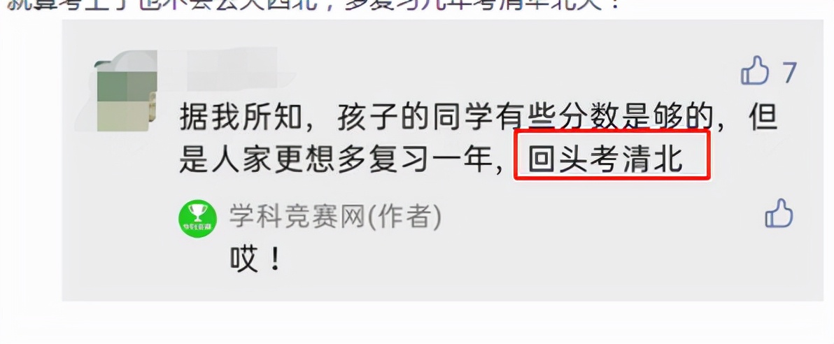 在少年班名单公布通知里,可以看到很多阴阳怪气的留言,比如下面这一条:“有些学生的分数是够的 ,但是人家想复习一年,回头考清北。”