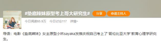 6年后的今天,故事原型——小林沙耶加因为考上哥伦比亚大学研究生再次冲上了热搜。