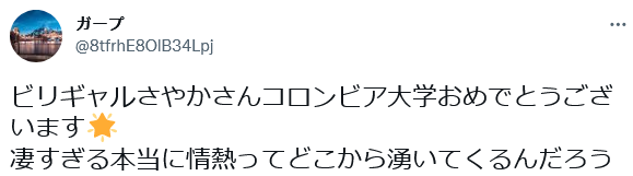 https://p3.toutiaoimg.com/origin/tos-cn-i-tjoges91tu/T2rLJTT6PdsYLj?from=pc“恭喜沙耶加考入哥伦比亚大学。太厉害了,这是哪儿来的热情啊!”