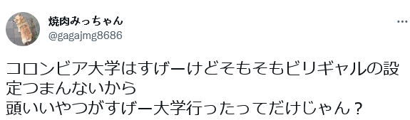 https://p3.toutiaoimg.com/origin/tos-cn-i-tjoges91tu/T2rLJuN9eFqqte?from=pc“虽然考进哥伦比亚大学挺厉害,但是拿垫底辣妹做人设就很无聊,不就是聪明人进了个牛大学嘛!”
