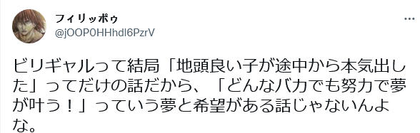 https://p3.toutiaoimg.com/origin/tos-cn-i-tjoges91tu/T2rLJvOIvuRMNW?from=pc“《垫底辣妹》就是讲了个头脑好的孩子半路努力学习的故事,并不是‘无论多么笨的人只要努力就能实现梦想!’的励志故事。”