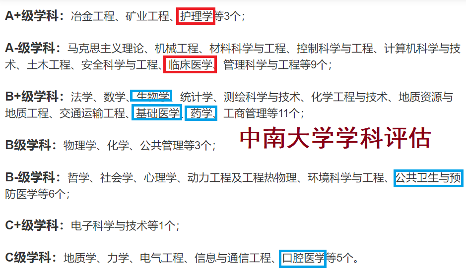 比起中南大学在工科领域的辉煌,湘雅有些落寞。护理学虽然排进A+,毕竟算不上医学核心。在十二个A类中,湘雅只有两个席位。