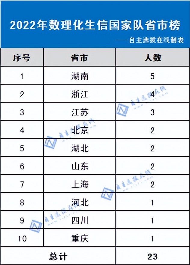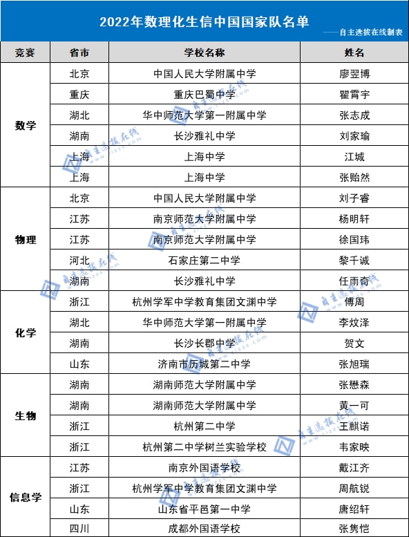 2022全国五大学科奥赛国家队名单全公布,湖南人数第一,浙江第二