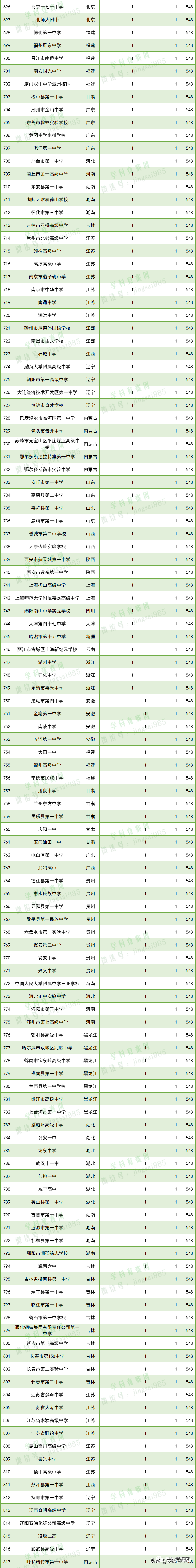 重庆市巴蜀中学校、人民大学附属中学、衡水泰华中学(原衡水一中)、东北师范大学附属中学(含实验)、湖南师大附中(含梅溪湖)、成都市第七中学、杭州学军中学、华中师范大学第一附属中学、西安市铁一中学(含滨河)、石家庄二中(含实验)