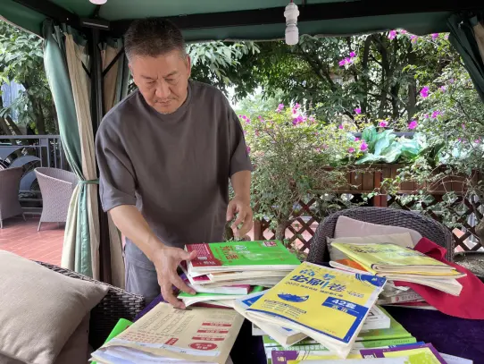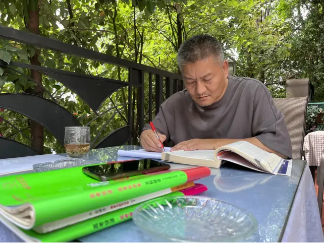 几年前,工厂拆迁,梁实离开建材行业,清闲的时间多起来。过去这一年,早上9点到晚10点,他每一天都泡在茶馆里读书学习,备战2022年高考。
