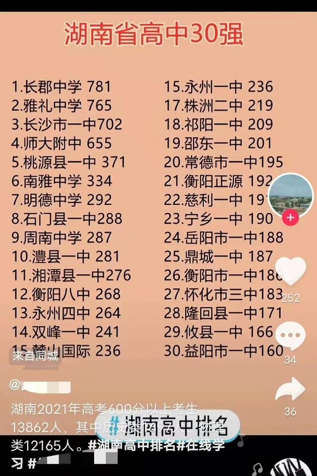 虽说四大名校的发出的另类喜报成绩喜人,但终归不是官方发布的,或多或少有夸大成分,但不影响结果。至于长沙四小名校明德中学、周南中学、南雅及麓山国际,放在其他地市基本会数一数二,但还长沙,只能争第四了。