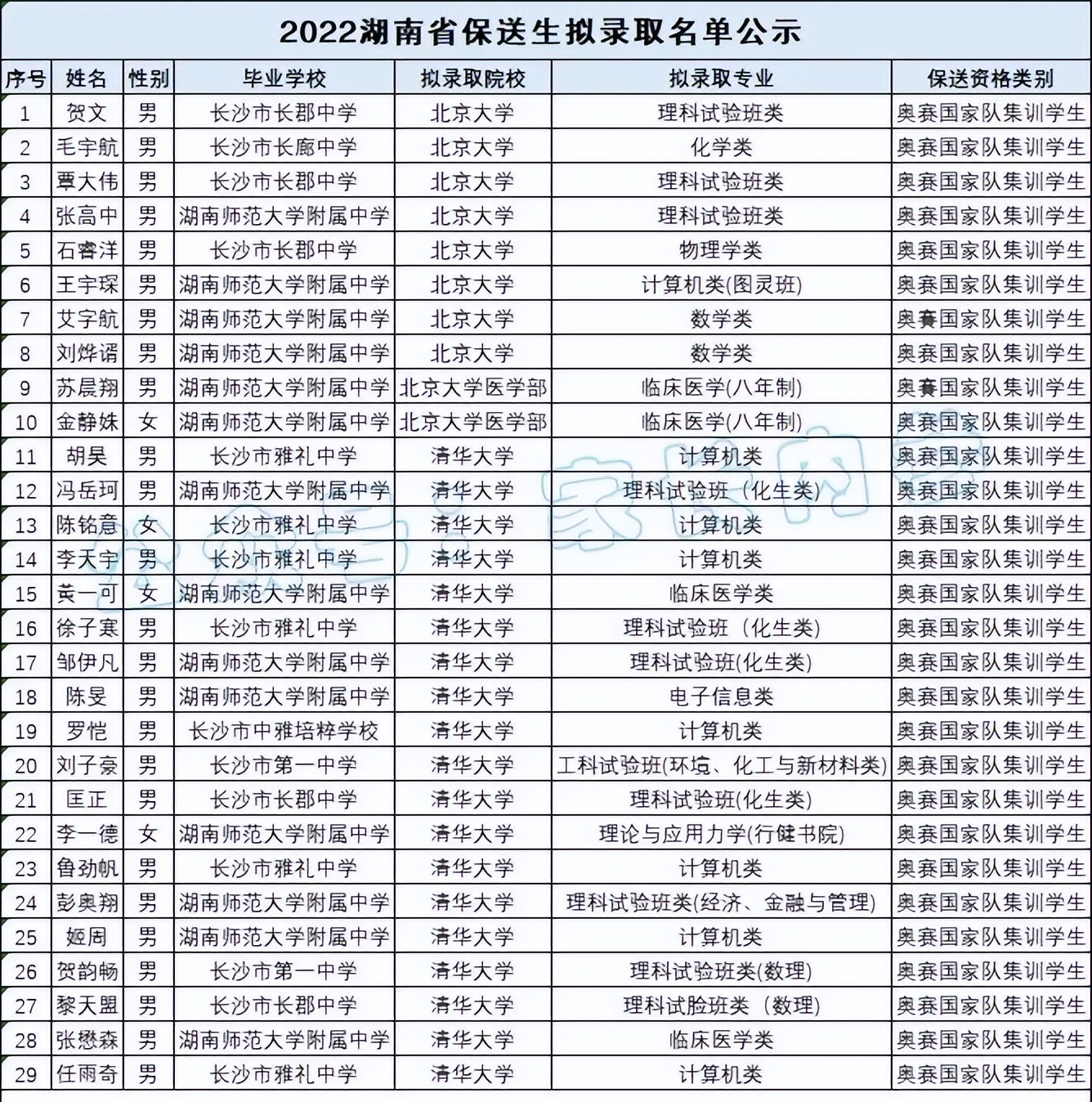比如湖南就已有29人因入选五大学科国家集训队直接保送清华、北大了。