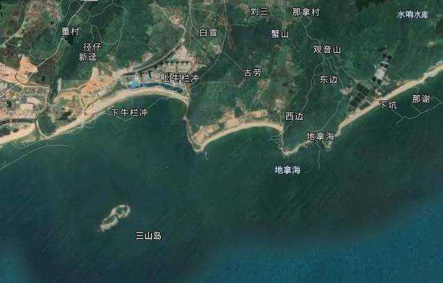 地拿海三面环山,一面向海的西南方就是风景如画的三山岛。因为处在以沙净海蓝的海陵岛上,这里的海水特别蔚蓝,沙质轻柔细腻。地拿沙滩面前的海,那绝对是一种无边无际的浩瀚,配合上天空像被打翻的蓝色墨水瓶,在水和天相接的地方,潮水像从天上涌过来。此时此景,对于一个生长在平原的我,是多么大的诱惑力啊!只是有点遗憾的是,在地拿沙滩上垃圾较多,地方很荒凉,什么商业都没有。