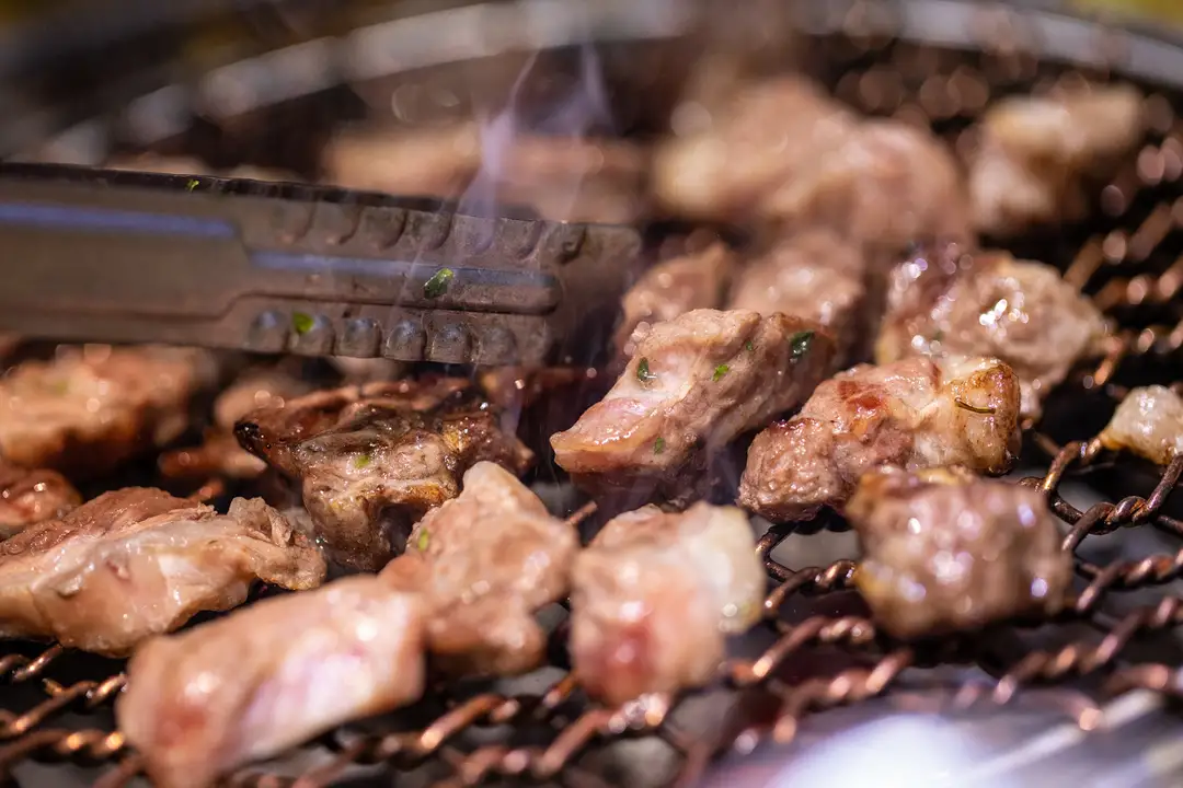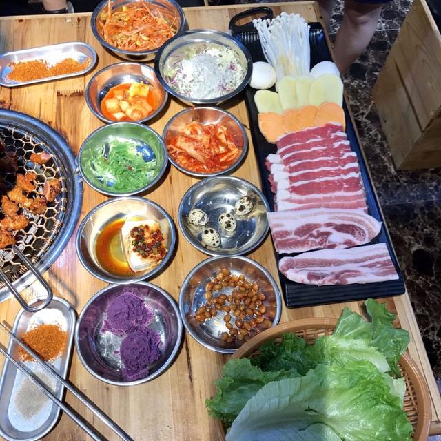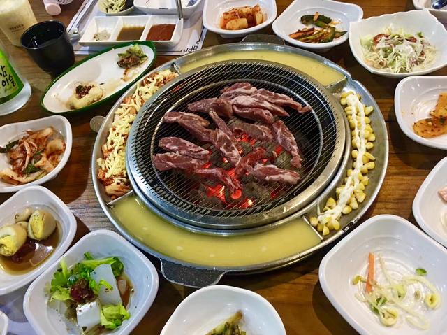 特别是在晚上,约上几个亲朋好友来远景路韩国街,点上几斤五花肉,服务生便会送上几碟泡菜,然后等到炭火正旺,用不锈钢夹往烤炉上放上几块肥瘦相间的五花肉,此时你会听到油花滋滋滋响遍整个食间,瞬间铁架上冒出缕缕白烟,此时此景,你的喉结是不是一上一下地在吞口水呢?