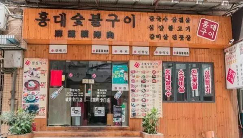 远景路是一条长816米的街道,在双向车道的马路两旁,聚集了140家韩国烤肉店,还有韩国料理,咖啡,韩式商店……远看,远景路这条街像是韩国美食街,但细细打量,却颇有点“中韩混搭”的味道。