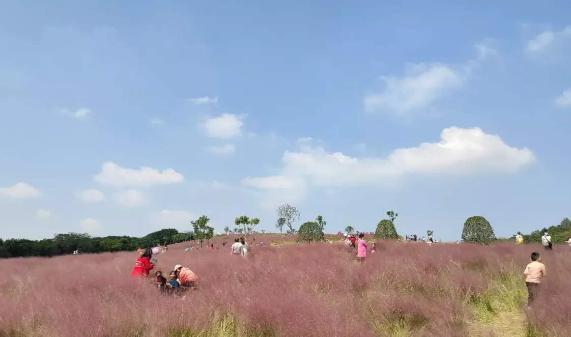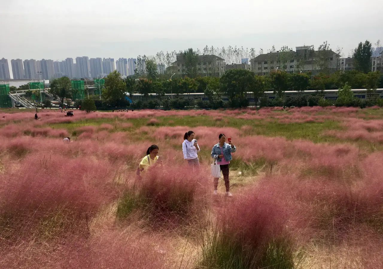 武汉光谷二妃子山粉黛盛开,如一片粉色海洋