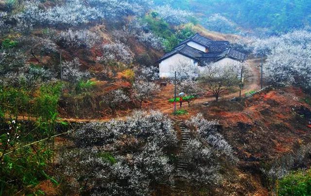 螺洞世外梅园20万株梅花树进入最佳观赏期,错过再等一年
