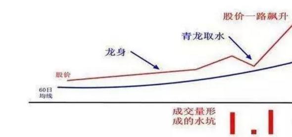 青龙取水是庄家沿60日均线盘升建仓完毕后,洗盘至60日均线的图形。青龙取水的时候离开60日均线越远越好,水坑里的水越潜越好(量芝麻点越小越好)。一旦青龙取水后股价容易获得上升动力!从而改变原有沿60日均线盘升的格局,加速上扬!