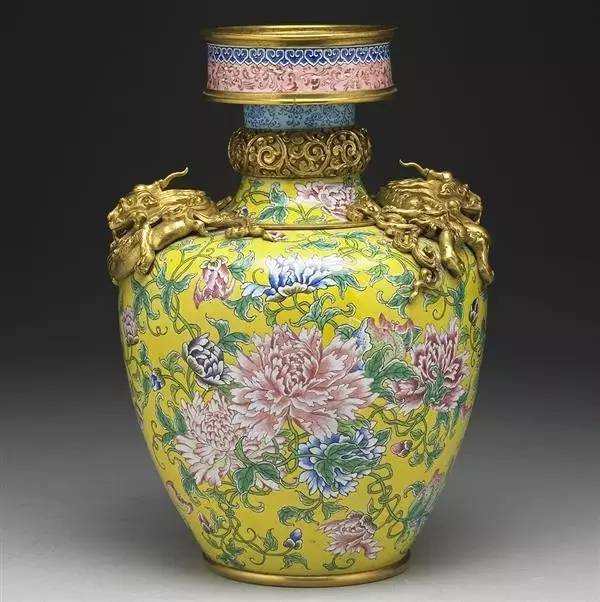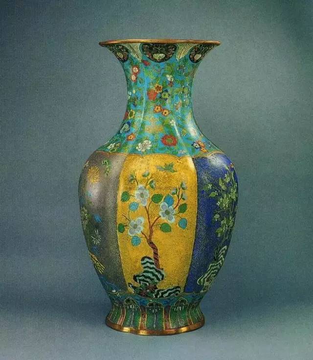 清嘉庆掐丝珐琅祥花瑞果瓜棱花口瓶